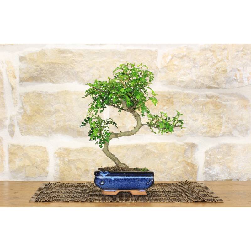 Das Foto ist nur indikativ und stellt nicht den Bonsai dar, der versandt wird, sondern einen der gleichen Sorte und Stil, den gleichen Topf und sehr ähnliche Größe.