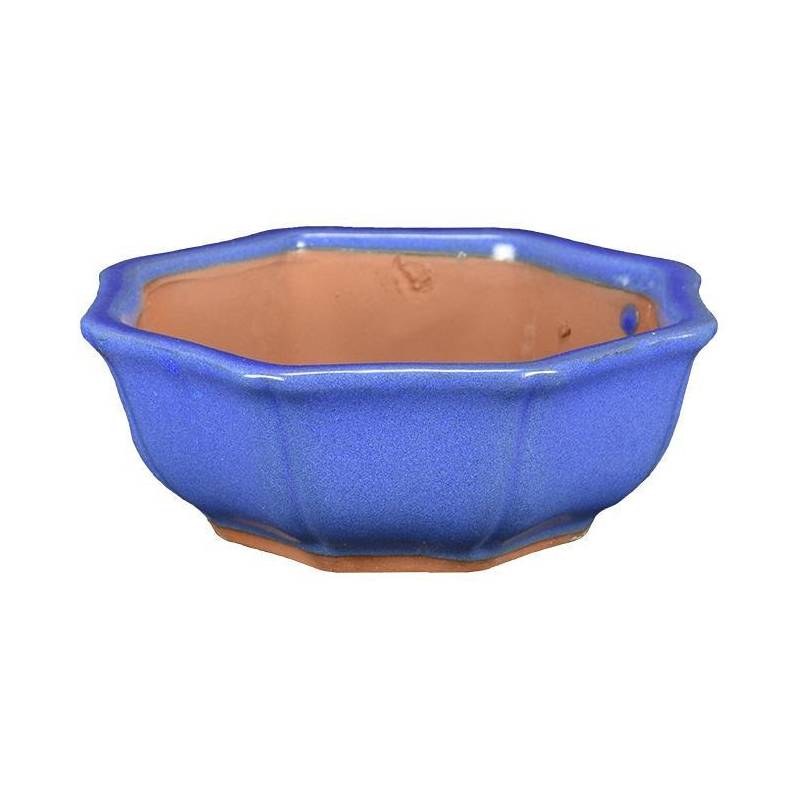 Bonsai-Topf aus hellblau glasiertem Steingut, Lotusblüten- oder achteckige Form, 19 cm.
