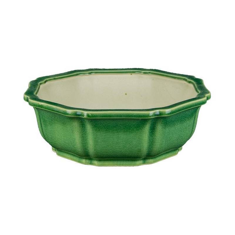 Grün emaillierte Lotusblüten-Bonsaischale 22,5 cm