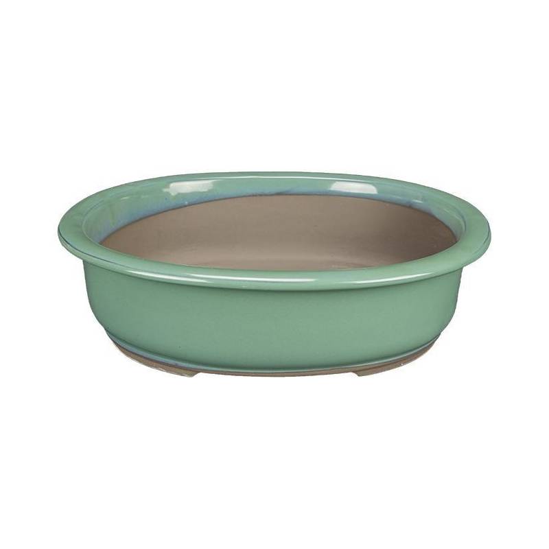 Ovaler grün glasierter Steingut-Bonsaitopf 18 cm.