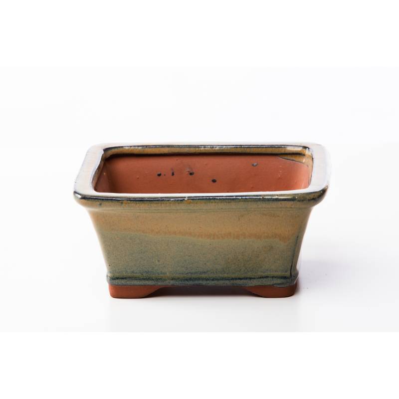 Rechteckige Bonsaischale 16 cm olivgrün emailliert