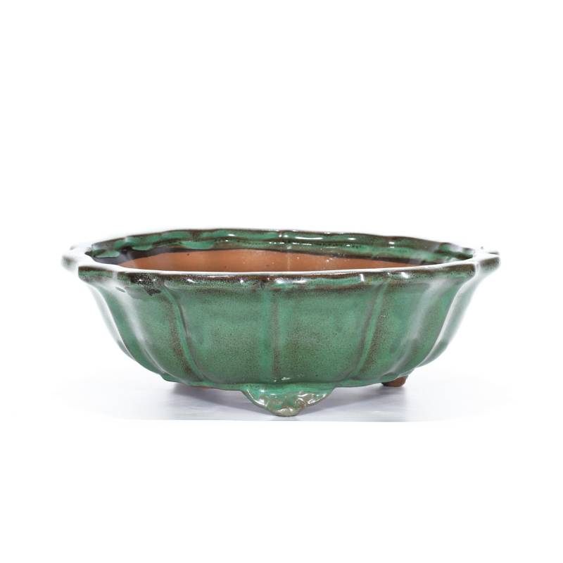 Grün emaillierte Lotusblüten-Bonsaischale cm. 27