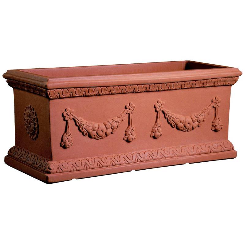 Kassettenvase aus Kunstharz cm. 120, verziert mit einer doppelten Girlande, ideal für die Gestaltung von Hecken und Grünanlagen.