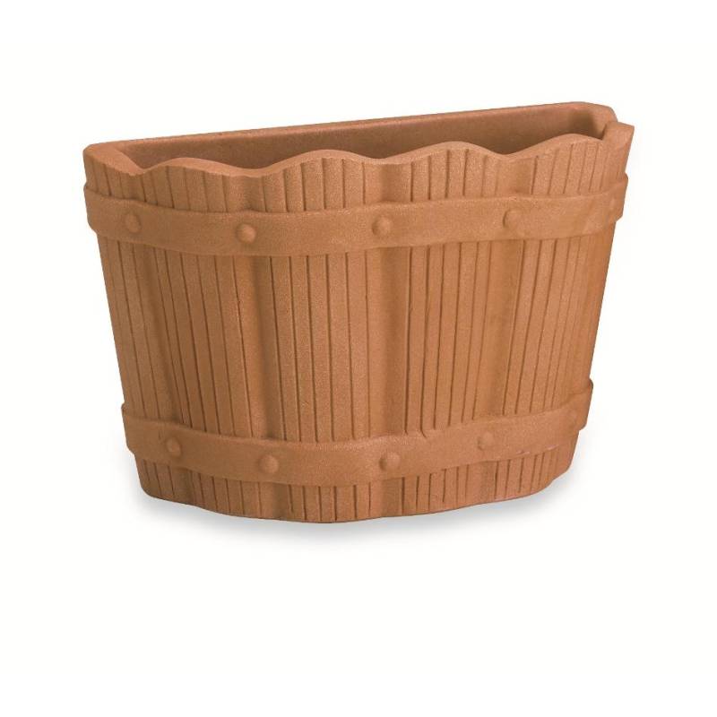 Fassförmige Harzvase zur Wandmontage, vorzugsweise mit Hängepflanzen.
