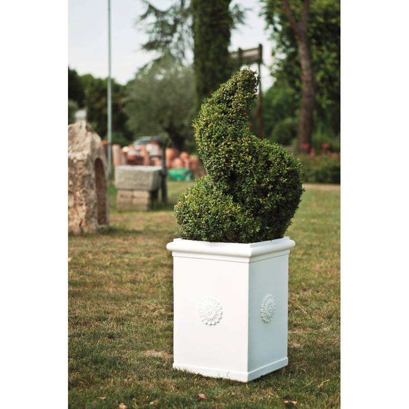Dieser hohe Pylon aus Harz mit Rosette ist Teil der „Terra“-Kollektion von Elbi, einer Serie von über 120 Modellen klassischer pots , die an die Farbtöne und Ausführungen toskanischer Terrakotten erinnern, jedoch mit der Innovation des Harzes. Dieser Pylon eignet sich perfekt zur Dekoration von Gärten und Außenbereichen und vereint Tradition und Technologie.