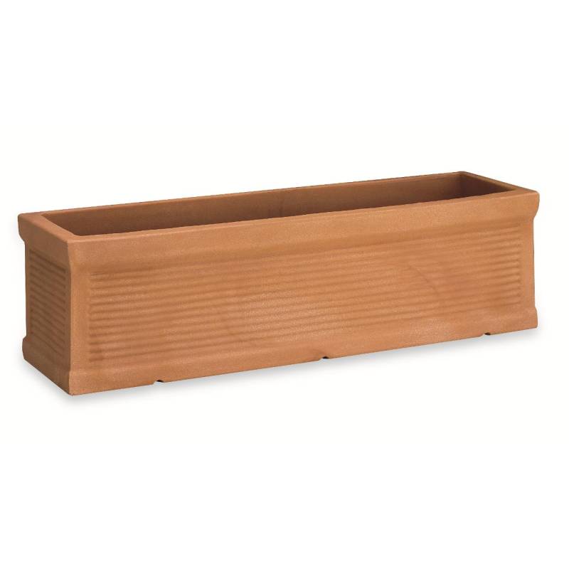 100 cm breite gerippte Balkonvase aus Kunstharz, ideal zum Dekorieren erhöhter Wände oder Randelemente mit kleinen blühenden oder vielleicht hängenden Pflanzen.