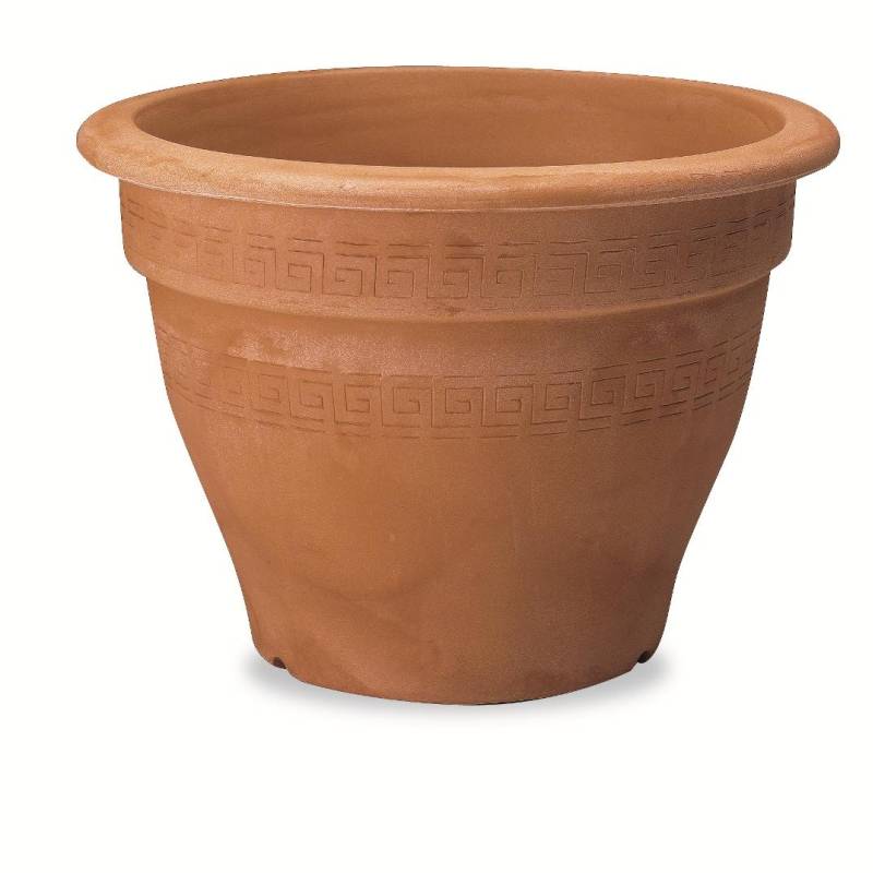 Runde Harzvase in Form einer Glocke, cm. 62 verziert mit einem einfachen griechischen Schlüssel, ideal für jede Art von Pflanze.
