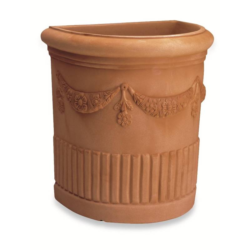 Wandvase aus Kunstharz cm. 55, dekoriert mit doppelter Girlande, ideal für die Dekoration von Wandsituationen, dank seiner Form mit 180°-Schnitt.