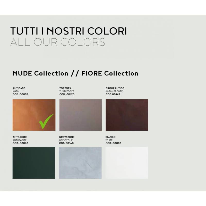 Dieses Modell ist in den Farben antik, anthrazit, weiß, terracotta, braun, grau, bronze und taubengrau erhältlich.