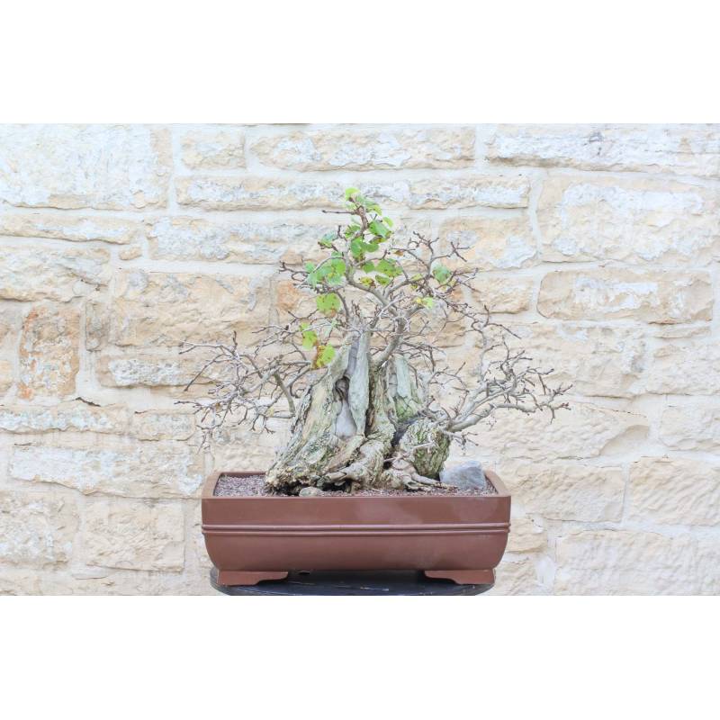 Black Mulberry (Morus Nigra) bonsai tree in rectangular pot, in natural stoneware.