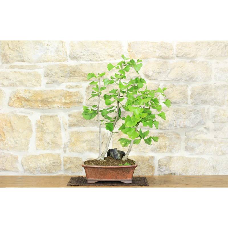 Ginkgo Biloba bonsai, in a rectangular pot, glazed in bronze color.