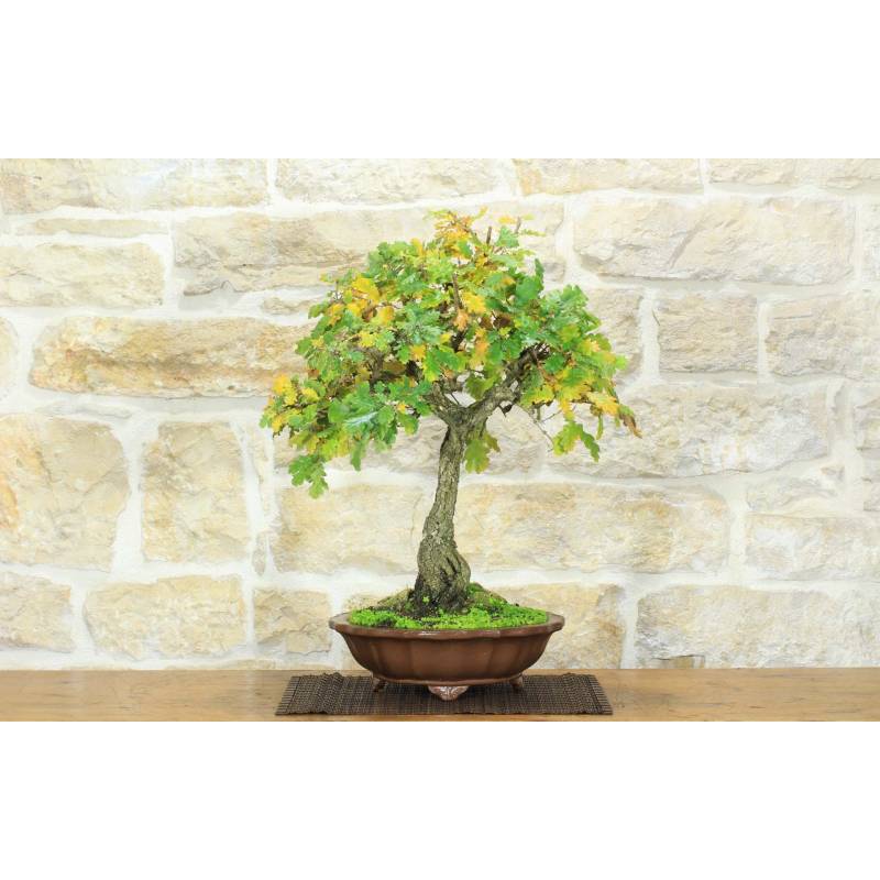 Bonsai Oak Oak (Quercus Pubescens) in lotus flower pot, in natural stoneware.