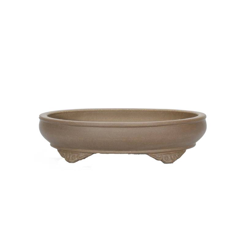 The pot has holes for water drainage and small holes to allow the bonsai to be tied to the pot.