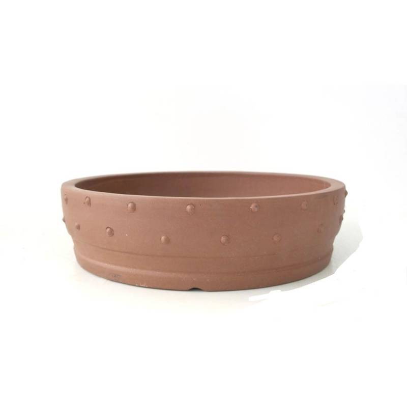 Yixing natural stoneware bonsai pot, 25 cm round shape.