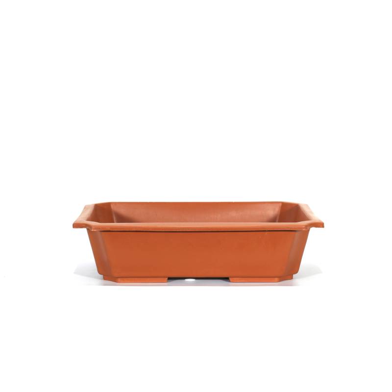 A rectangular pot ideal for small plants, orchids, flowers or even bonsai, equipped with holes for water drainage and plastic feet to protect the base of the pot.