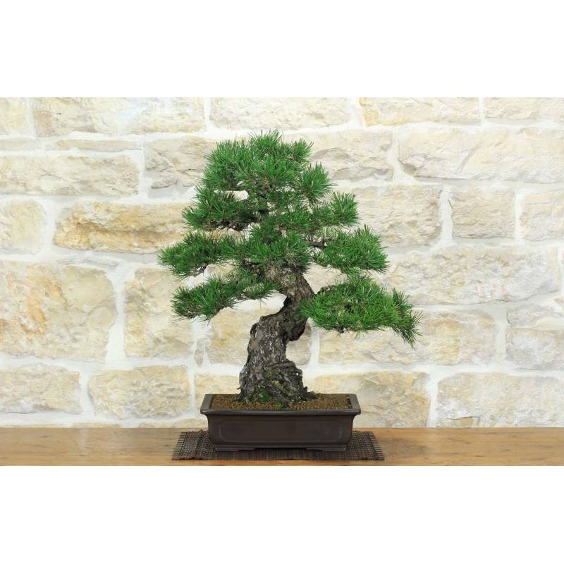 Bonsaï de pin noir du Japon (Pinus Thunbergii), dans un pot rectangulaire, en grès naturel.