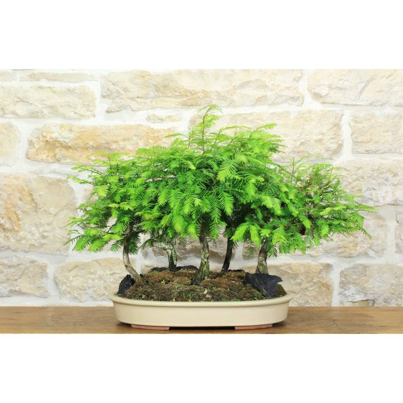 Bonsaï de Metasequoia (Metasequoia Glyptostroboides) dans un pot ovale à vernis ivoire.