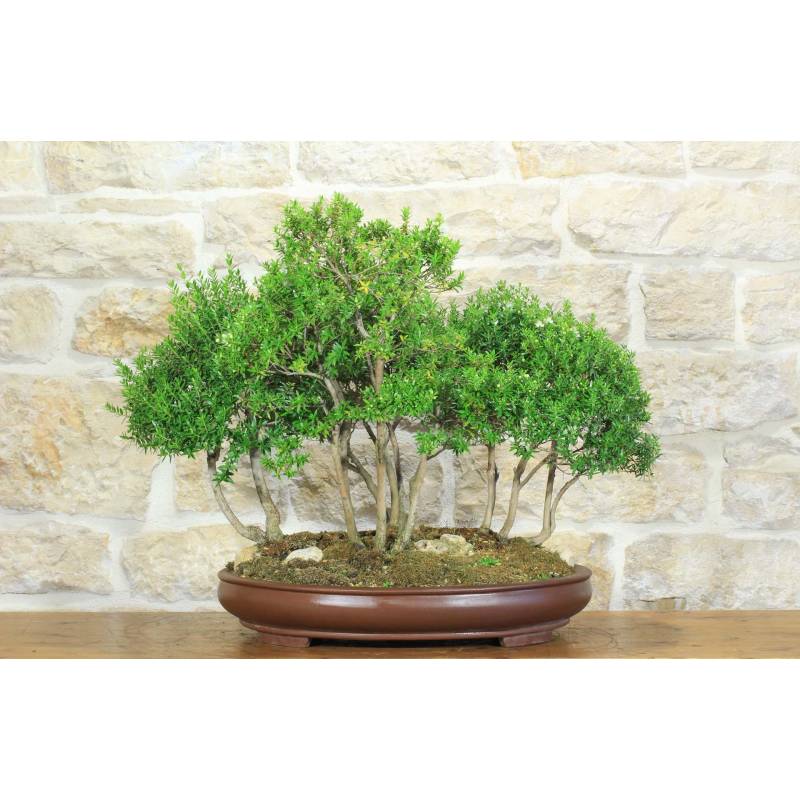 Myrte (Myrtus Microphylla) en pot ovale, en grès naturel.