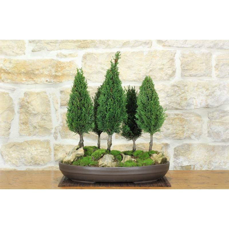 Le bosquet est composé de 5 bonsaïs de cyprès.