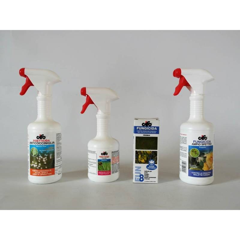 Kit composé de 4 produits essentiels pour garantir une protection maximale de vos plantes ou bonsaïs contre les maladies animales et fongiques.