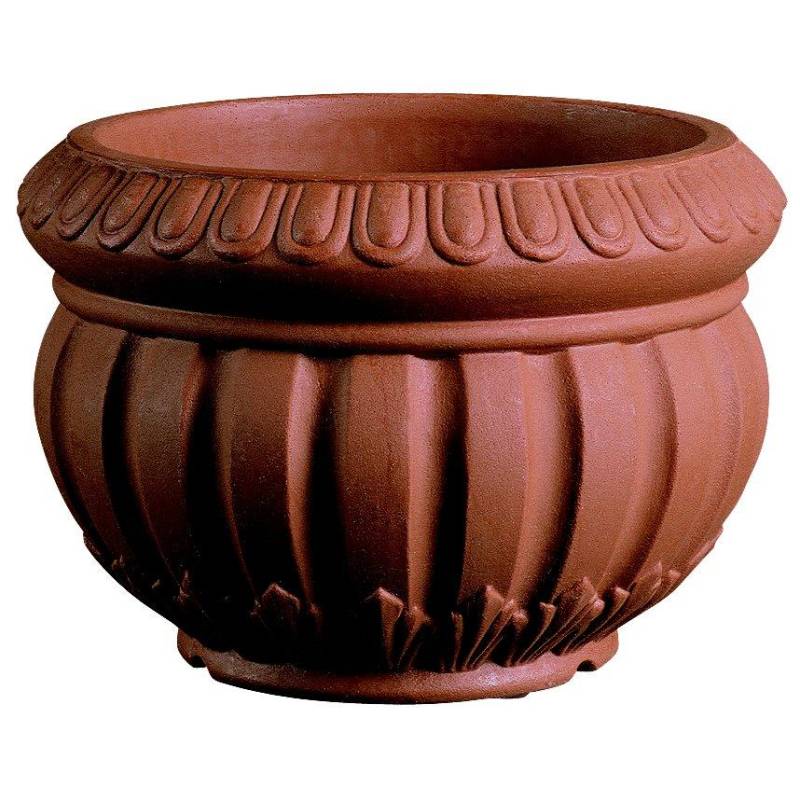 La collection "Terra" d'Elbi propose une large gamme de pots au design classique, inspiré de la tradition des terres cuites toscanes, mais avec l'innovation de la résine. Parmi ses plus de 120 modèles, le Caspò Acanto en résine se distingue par son esthétique qui rappelle l'artisanat, associée à des matériaux modernes et résistants.