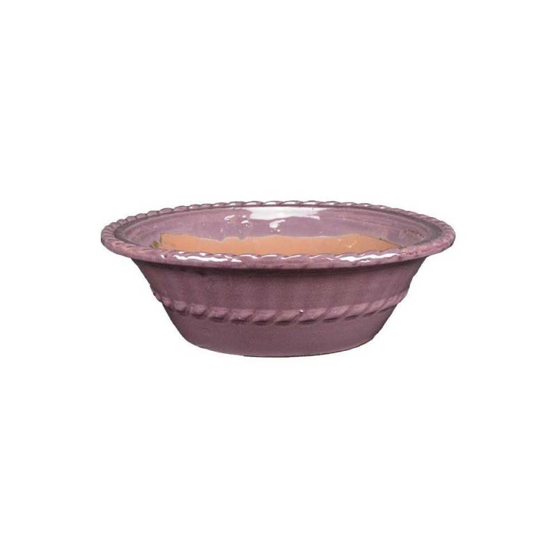 Pot rond de bonsaï en grès émaillé prune 20 cm.
