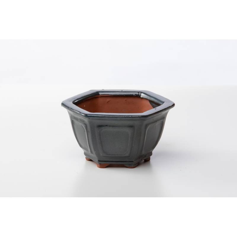 Pot à bonsaï hexagonal 12 cm émaillé vert