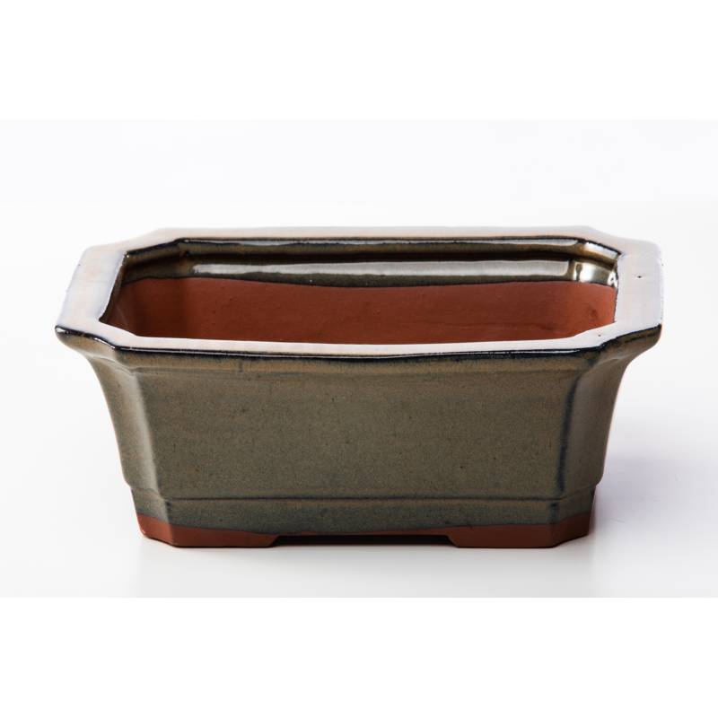Pot à bonsaï rectangulaire 21 cm émaillé vert olive