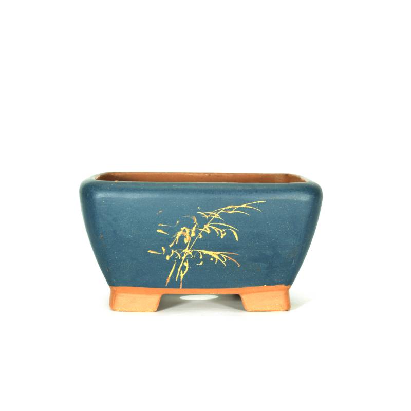 Pot à bonsaï carré cm. 21 en grès vert décoré