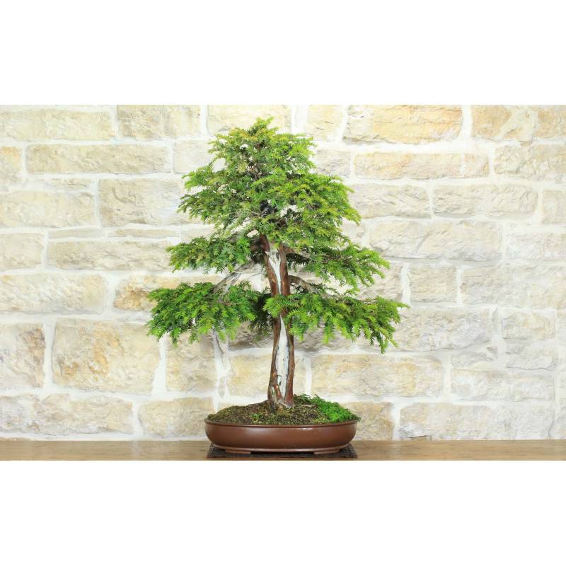 Bonsai di Tasso (Taxus Baccata) in vaso ovale, in gres naturale.