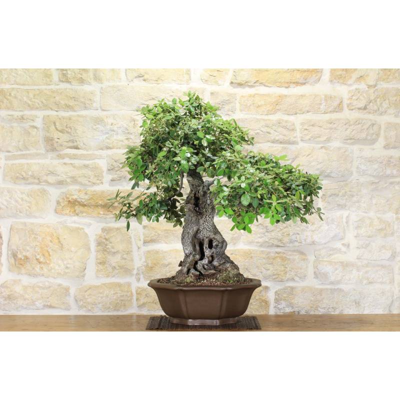 Bonsai di Quercia Leccio (Quercus Ilex) in vaso ottagonale, in gres naturale.