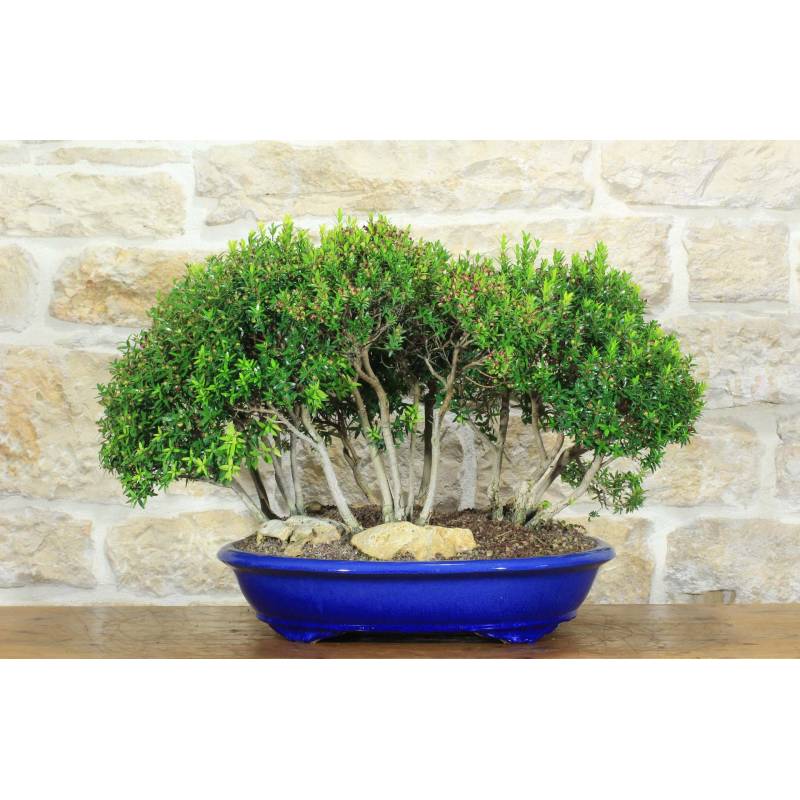 Boschetto di Mirto (Myrtus Microphylla) in vaso ovale, smaltato di colore blu.