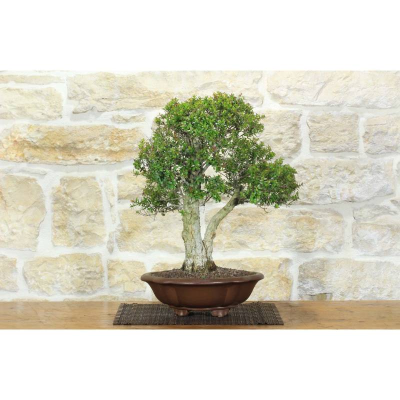 Bonsai di Mirto (Myrtus Microphylla) in vaso a nuvola, in gres naturale.