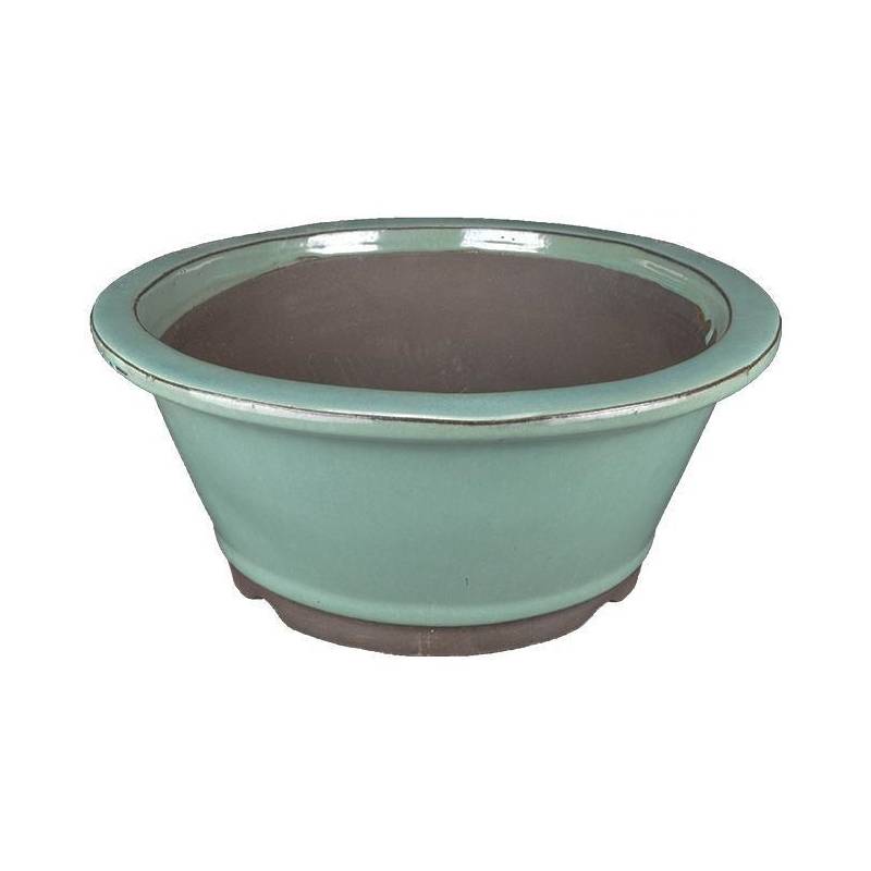 Vaso bonsai tondo in gres smaltato verde 39 cm.