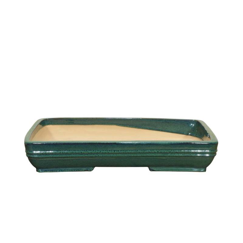 Vaso bonsai in gres smaltato verde di forma rettangolare 54 cm, questo modello basso è ideale per bonsai a scopa rovesciata o boschetti.