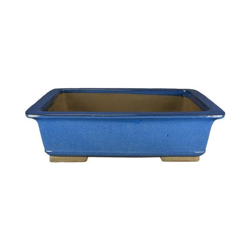 Vaso bonsai rettangolare 42 cm, smaltato di colore blu
