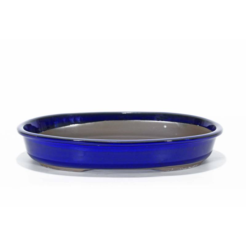 Vaso bonsai ovale smaltato di colore blu, questo modello basso è ideale per bonsai a scopa rovesciata o boschetti.